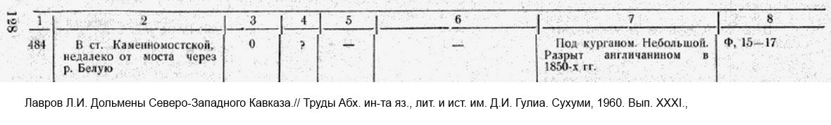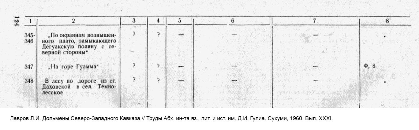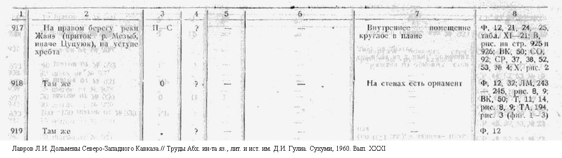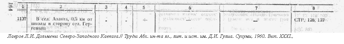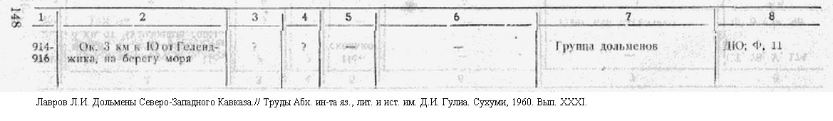 1960 г. Лавров Л.И. внес в каталог 13 дольменов.