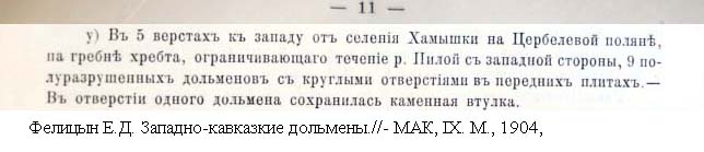 1904 г. в книге Фелицына Е.Д. сообщено о раскопках 12(13?,14?) дольменов на Серегиной поляне(1878).