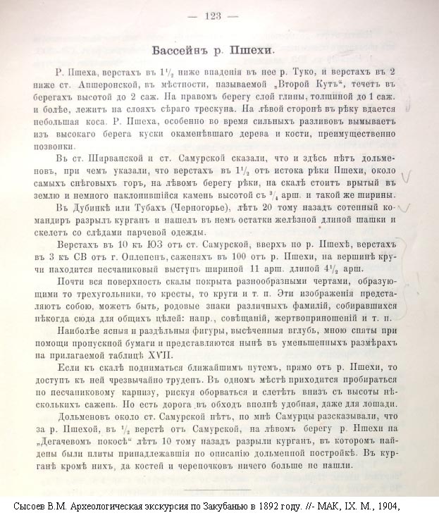 1904 г. в книге Фелицына указано в юрте ст.Баговской не более 100 дольменов.