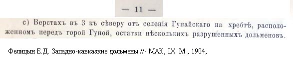 1904 г. в книге Фелицына Е.Д. сообщено о раскопках 13 дольменов на поляне Зацепина(1878).