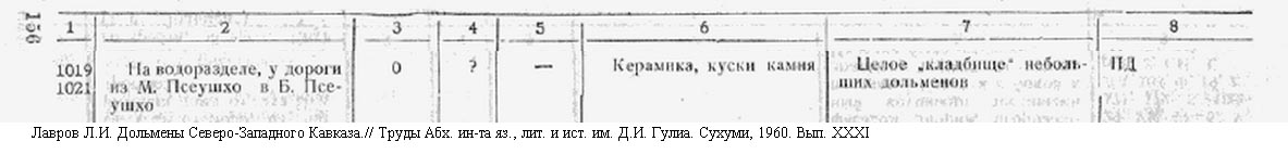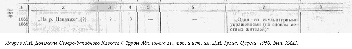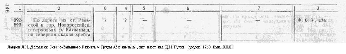 1960 г. Лавров Л.И. внес в каталог 5 дольменов.