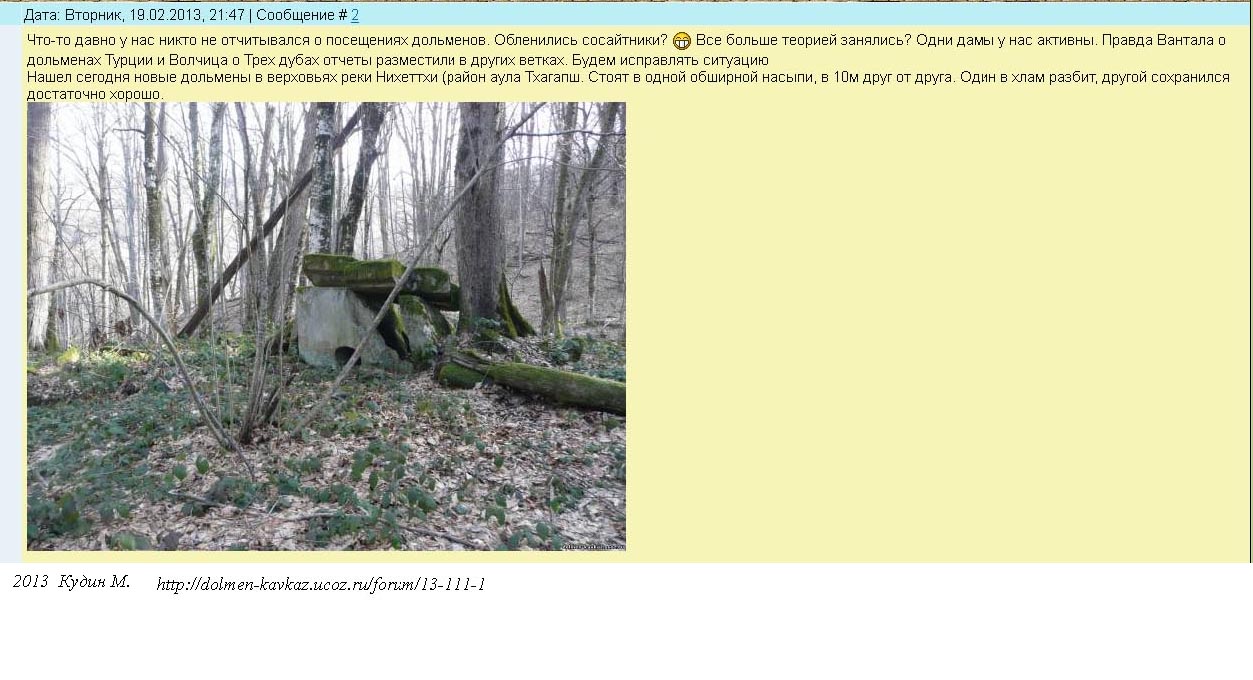 2010 г. Кондряков Н.В. указал 6 дольменов и опубликовал фото 3 дольменов.