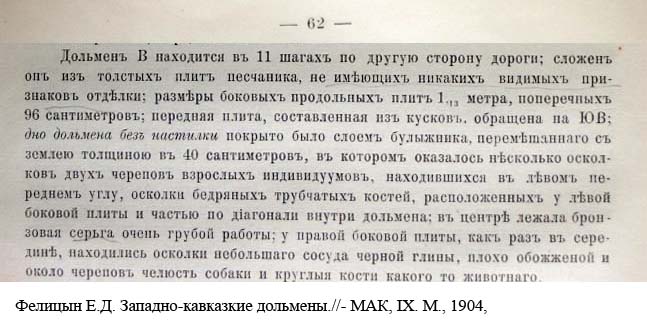 1904 г. Фелицын Е.Д. описал раскопки дольмена.