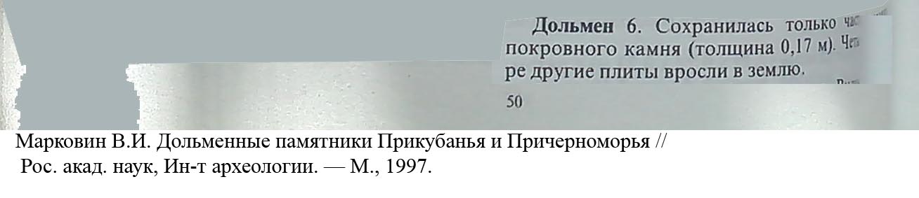 Другие названия: Дольмен №6 (Марковин В.И.)