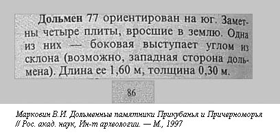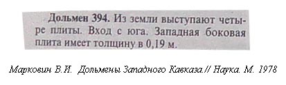 1978 г. Марковин В.И. указал портальный дольмен, указал разиеры плит.