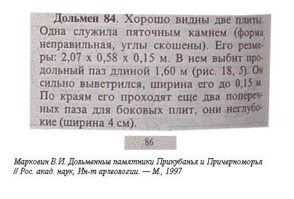 Другие названия: Дольмен №555 (Марковин В.И.)