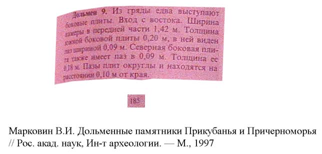 1997 г. Марковин В.И. указал развал дольмена. (1975)