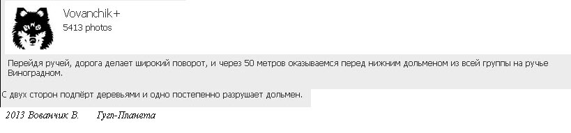 2013 г. Вованчик В. опубликовал фото дольмена.