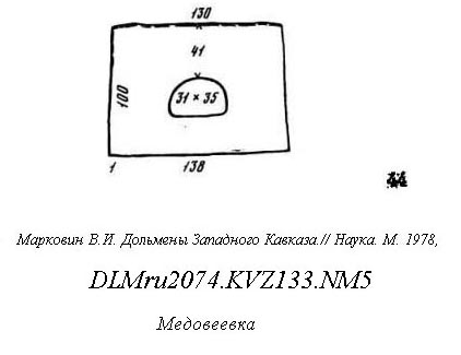 1978 г. Марковин В.И. указал остатки 10 плиточных дольменов на Медовеевском плато, по сведеньям Ситникова Л.Н., Ситникова Л.Л.(1970)
