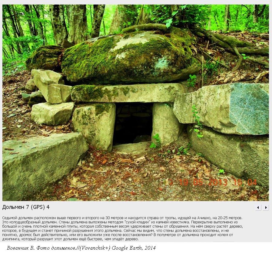 2014 г. Вованчик В. описал дольмен и опубликовал фото а гугл-планете.(Вованчик В.,2013).