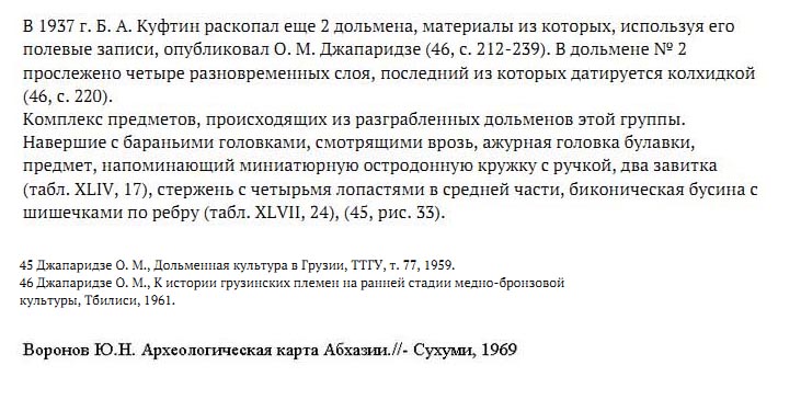 1969 г. Воронов Ю.Н. указал, что Куфтин Б.А. в 1937 г. раскопал ещё 2 дольмена, которые были опубликованы Джапаридзе О.М.