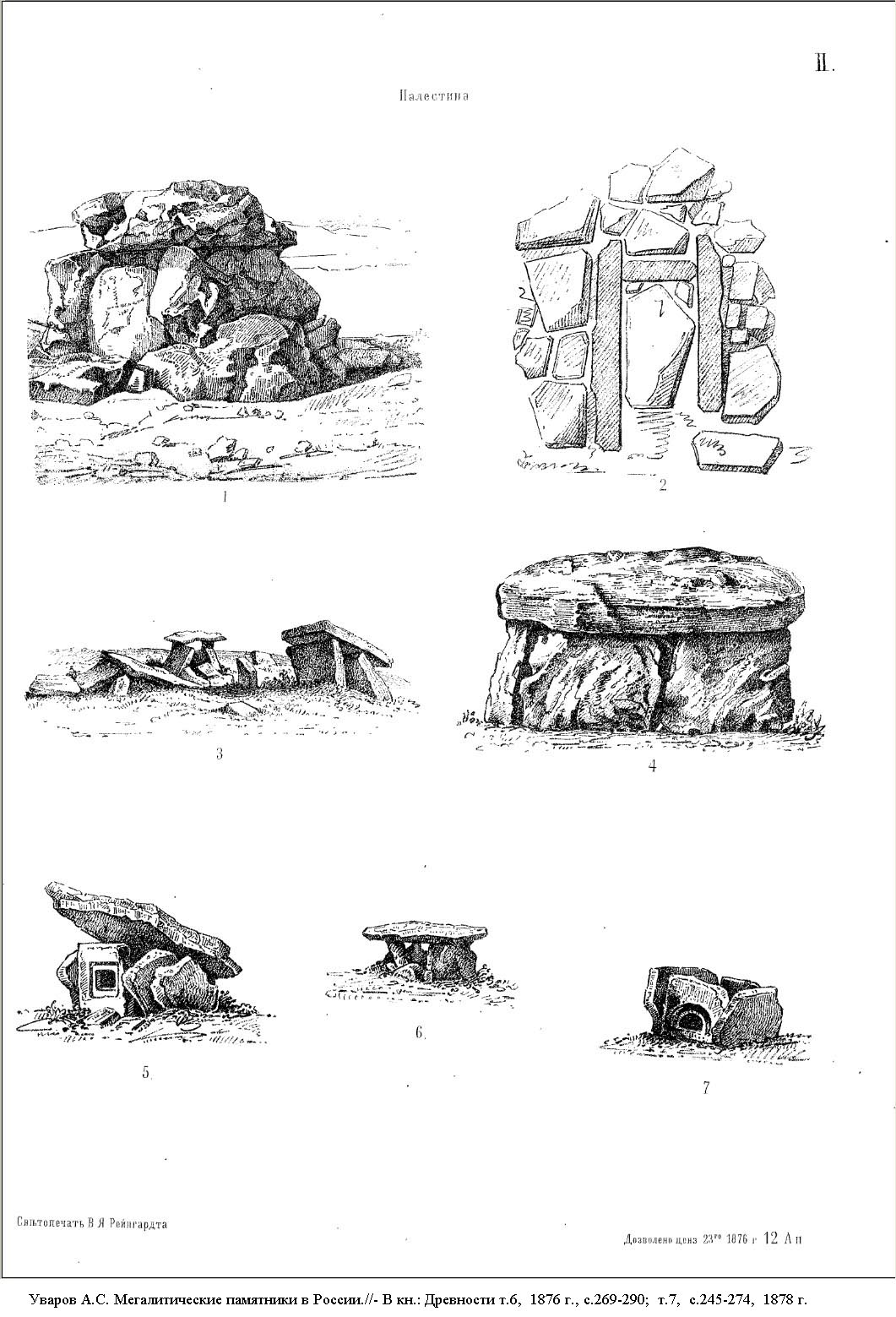 - Ему принадлежат и первые рисунки дольменов в Крыму недалеко от Гаспры, возле Геленджика, и у форта Святого-Николая [5*2, Ser4-XXX, fig 5-7]