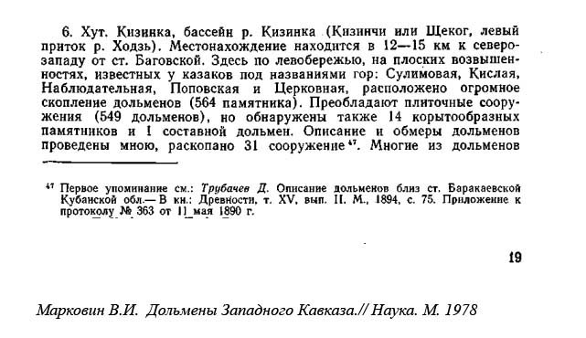 134*1. Кривобоков Л. Богатырские хатки(дольмены) // Труды Ставропольской ученой архивной комиссии, вып.1, Ставрополь, 1911