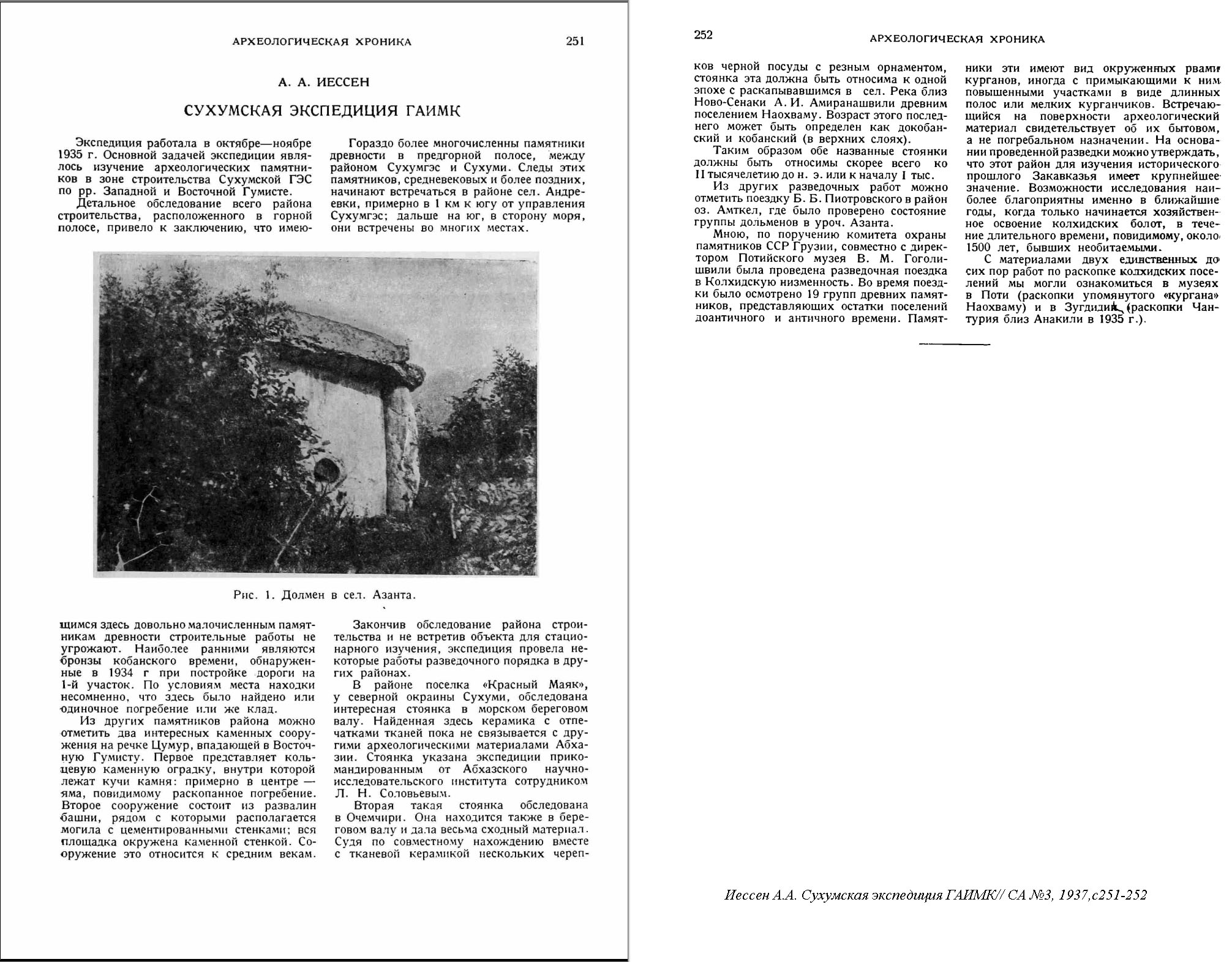 127*5. Глазов К.А., Галищева Е.В. Составной дольмен в бассейне р. Сочи // Записки ИИМК РАН. № 9. 2014. / СПб, 2014, С. 70 – 75;