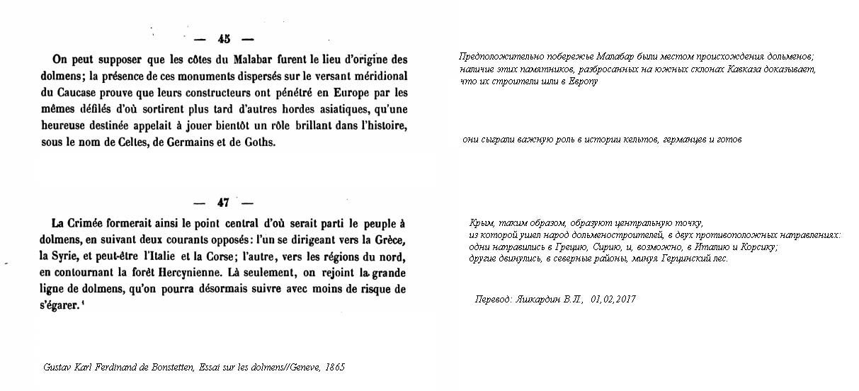 - Он первым отметил схожесть дольменов, которые он наблюдал на Кавказе, в Крыму и северной Франции.