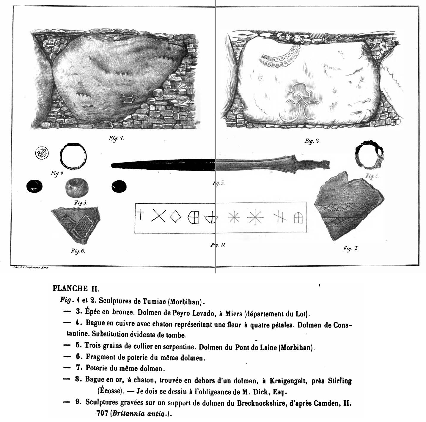 - Легранд Досси в этой работе указал на "ложность" сведений о том, что дольмены использовались друидами для человеческих жертвоприношений.